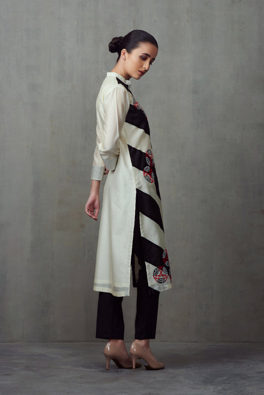 1338 Self Applique Ivory Kurta with Bottoms