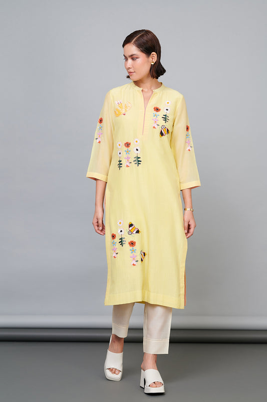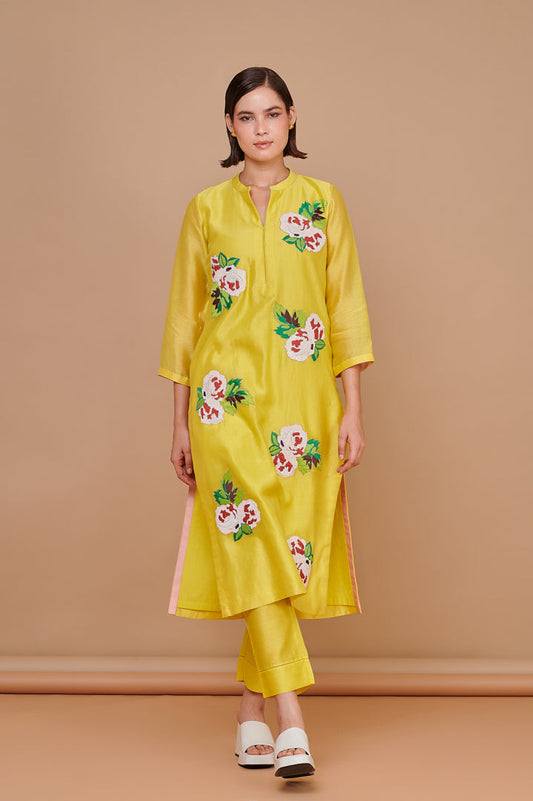 1357 Yellow Hand Emb Kurta with Bottoms