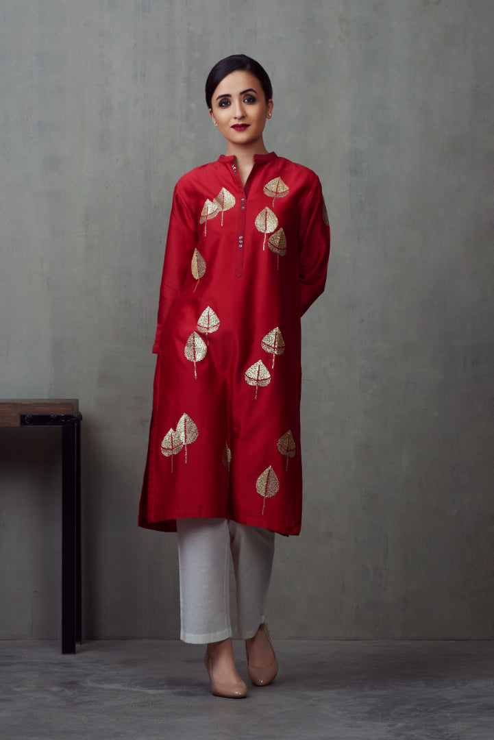 Description :: Black White stripe Chanderi Tunic with motifs embroidered in dori. Black Chanderi Trouser.